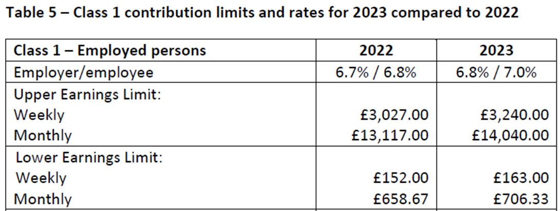 Class 1 contributions for 2023
