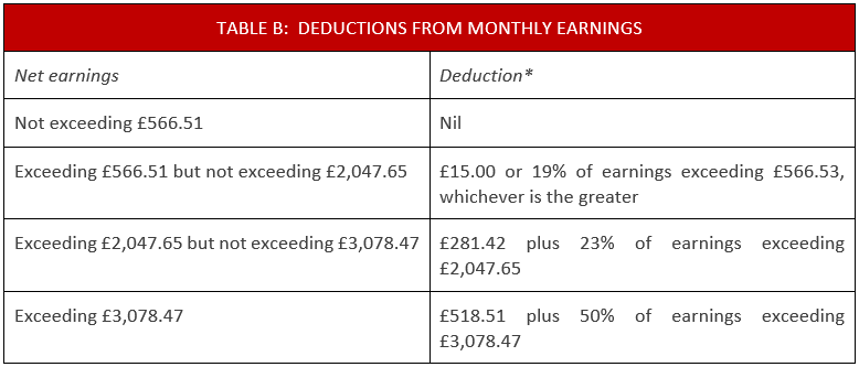 TABLE B: DEDUCTIONS FROM MONTHLY EARNINGS