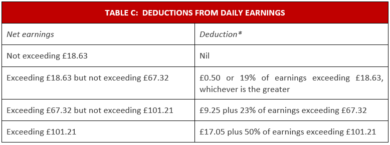 TABLE C: DEDUCTIONS FROM DAILY EARNINGS