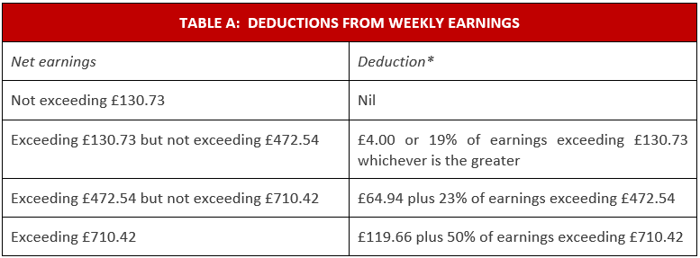 TABLE A: DEDUCTIONS FROM WEEKLY EARNINGS